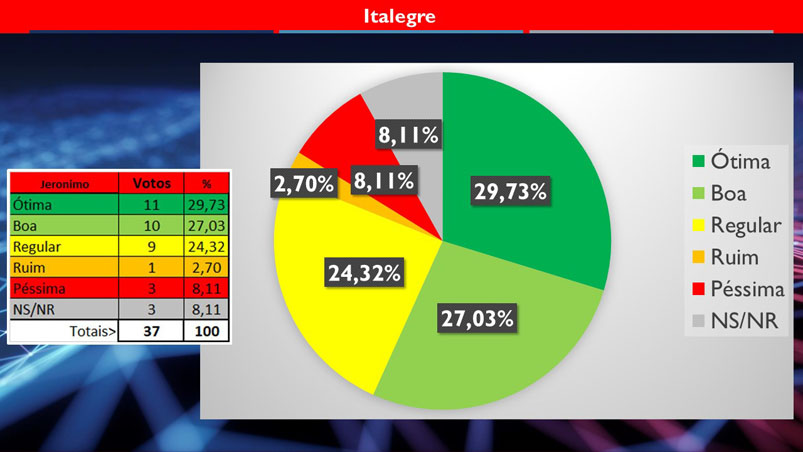 Avaliação dos 6 meses de gestão Canário e Adnaldo em Baixa Grande Posted on 14 de julho de 202514 de julho de 2025 By Ediomario A pesquisa ouviu 449 pessoas entre os dias 30 de junho a 13 de julho Dados Gerais Dados Por Secretarias Dados Por Povoados Dados por Bairros Aguardem Biblioteca