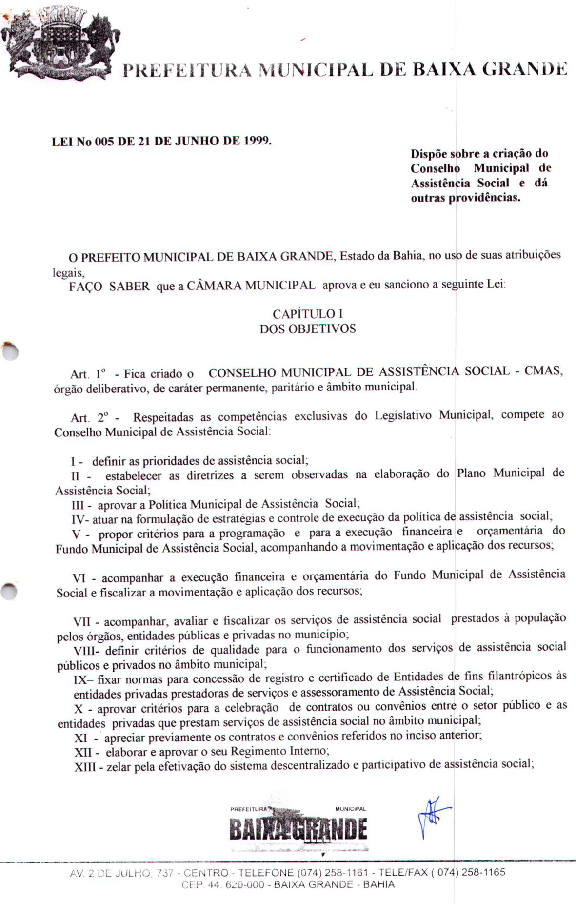 Lei 005/1999 | Dispõem sobre a criação do Conselho Municipal de Assistência Social Posted on 21 de junho de 199927 de setembro de 2022 By ediomario Arquivo cedido por João Gouberto Sem categoria